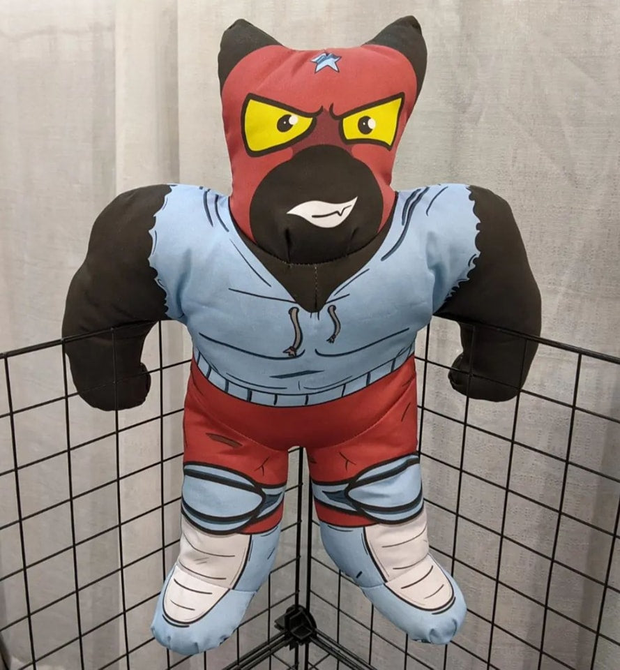 They're perfect for wrestling, cuddling, decorating, or general vibing. Super Lucha Cats Buddies measure 16.5" inches high by 15" inches wide. These are part of the limited edition 1st production run, and are marked as such on the bottom of their feet. They look, feel and play like the buddies from wrestling's past.